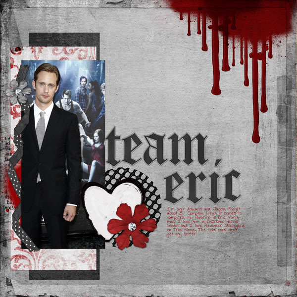 I've been over Twilight for awhile now, but still find the movies amusing. So I had to scrap my favorite vampire, Eric Northman from the Sookie Stackhouse books, played by the very hot and very tall Alexander Skarsgard on True Blood.
