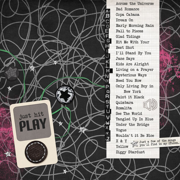 I did this one for a TLP journaling challenge to use the alphabet to make a list. I went through my iTunes to find some random songs, which also shows my crazy taste in music. Credits